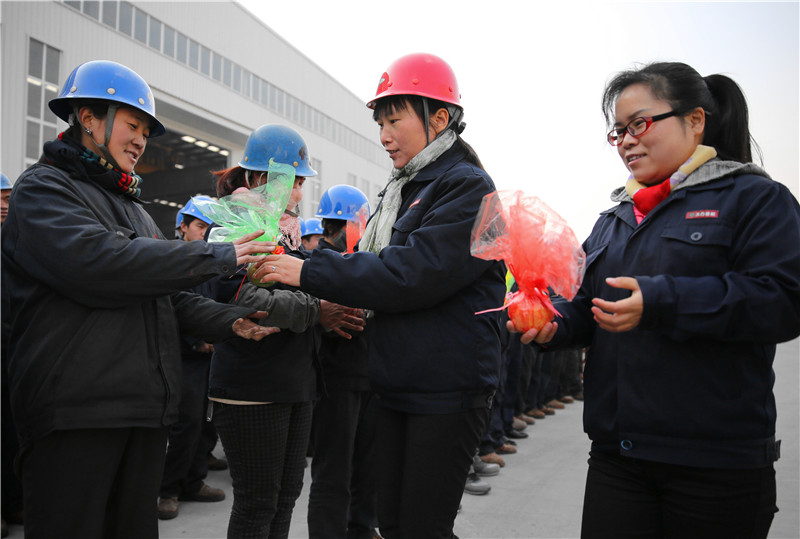 副总经理李晓宁将平安果送到每一位一线职工手中