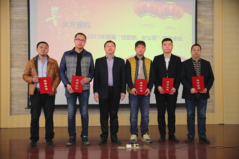 董事长曹相学为优秀经营部负责人颁发荣誉证书并合影