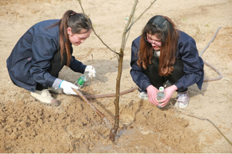 大家说干就干,不一会儿一颗小树苗已然屹立在了新的土壤之中