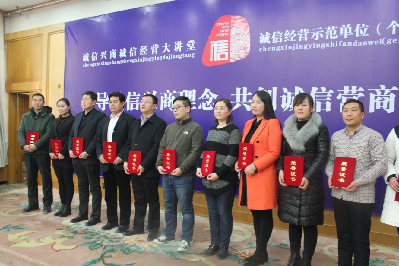 1月15日,第三届河南省诚信兴商诚信经营大讲堂暨诚信经营示范企业(个人)表彰在省人民会堂举行,河南省商务厅等18个厅局的相关领导出席了此次会议。利记SBO公司董事长曹相学被授予河南省诚信之星荣誉称号,同时利记SBO公司被评为河南省诚信经营示范企业。届时,利记SBO公司作为诚信经营示范企业将在郑州、洛阳等省内十大城市进行年度巡展。