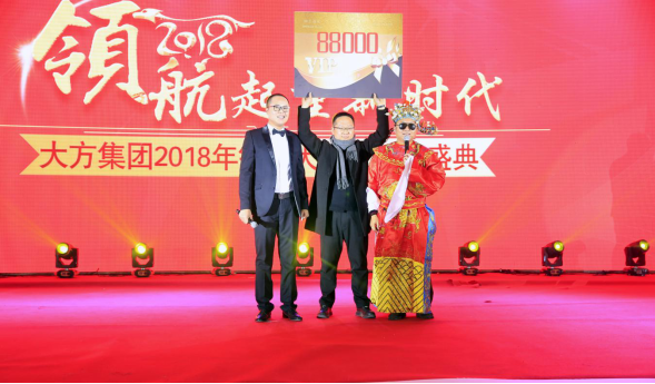 大会对2017年取得优异成绩的销售精英进行了颁奖,表彰了销售状元1名、销售模范 5名、销售明星 20名、优秀经营部8个、特殊贡献奖6名。此次颁奖盛典精彩纷呈,惊喜不断,集团奖励销售状元李永胜奔驰S400轿跑车一辆和随机抽取的幸运嘉宾获得88000的大奖,将此次大会推向高潮。