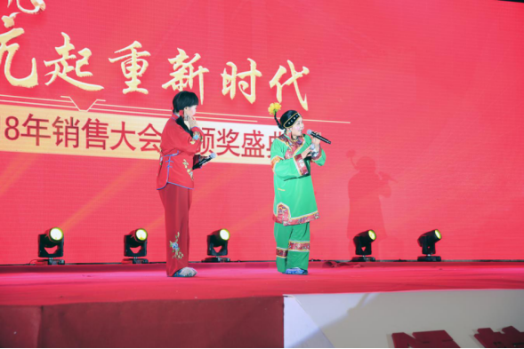 大会在《鼓韵盛世》高亢激昂的节目表演中拉开序幕、《光影太极》、戏曲小品《教闺女》等节目精彩纷呈、高潮迭起。颁奖盛典在《高歌向明天》嘹亮的歌声中圆满结束,集团领导与全体销售精英合影留念。