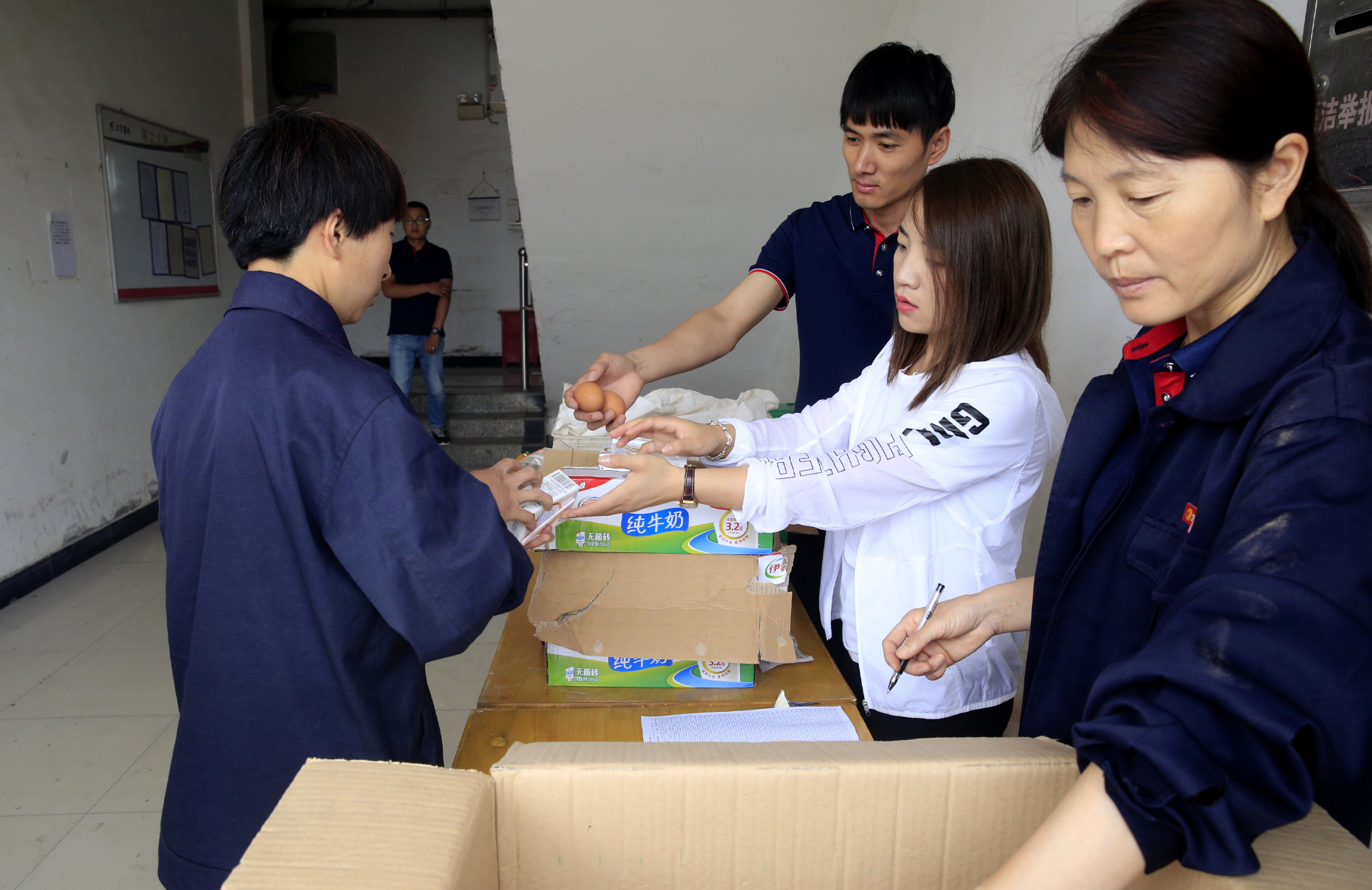 按照体检要求,参加体检的员工上午需空腹检查血糖,考虑到体检人员体检后需返回岗位工作,不吃早餐容易造成低血糖,集团在检查结束后还特别为每位员工准备了纯牛奶、面包、鸡蛋、火腿肠等作为早餐。